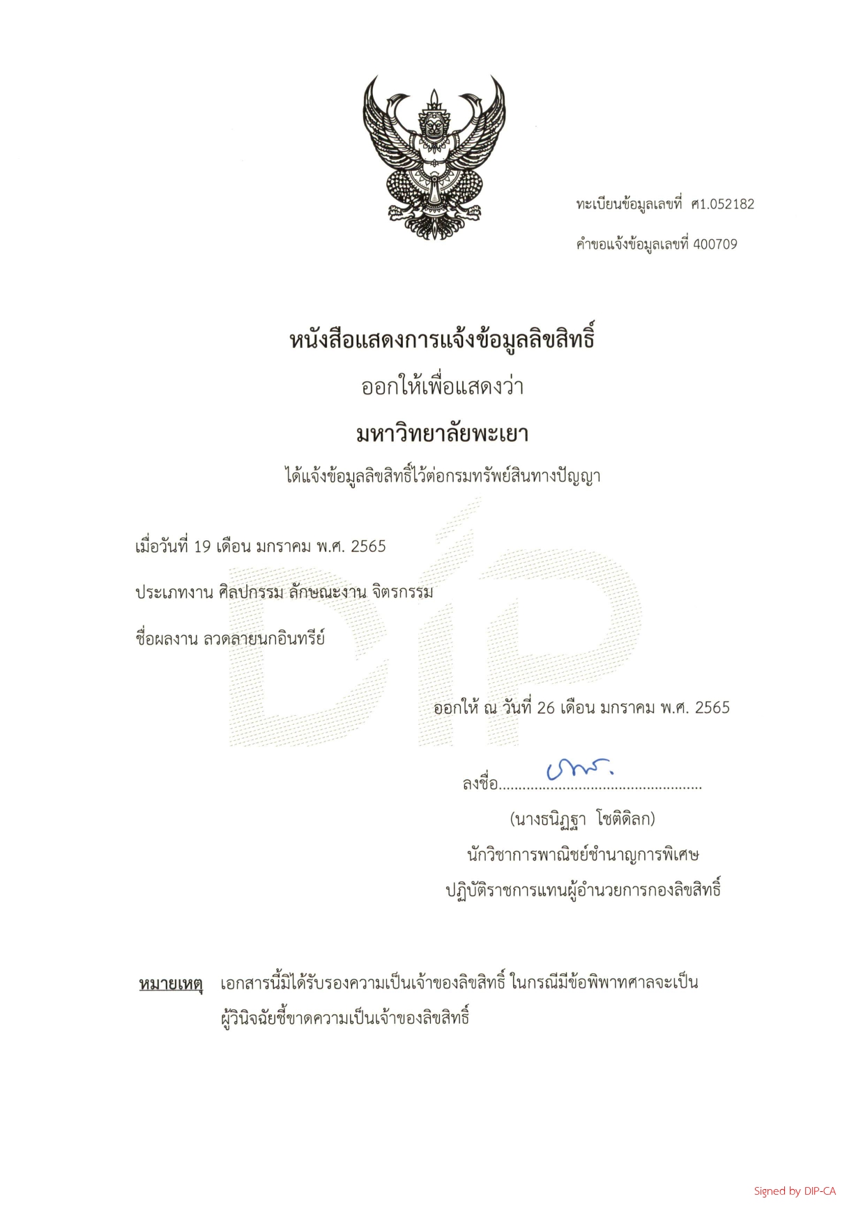 ออกให้ ณ วันที่ 26 เดือน มกราคม พ.ศ. 2565